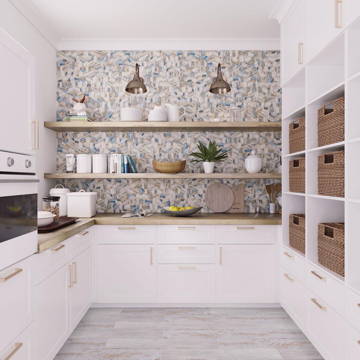 For a homeowner hoping to create a unique kitchen design while being environmentally responsible, this Recycled Glass Hexagon Mosaic backsplash can provide the best of both worlds. It adds a colorful touch to an otherwise neutral kitchen design while helping you do your part for conserving the planet!