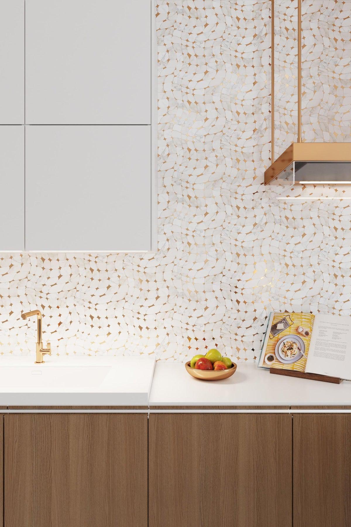 Our Golden Stars Calacatta Gold and Brass Mosaic is a prime example of how marble and gold pair beautifully. The polished marble is luxurious and refined, while the brass adds a touch of warmth and elegance. This tile is perfect for creating a stunning backsplash or accent wall, and it's sure to make any interior feel like a royal retreat.