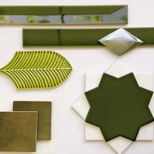 Having enough space allows for a mudroom and laundry room combo. This Green Mixed Leaf Recycled Glass Mosaic Tile adds a striking feature that’s sure to catch anybody’s attention.