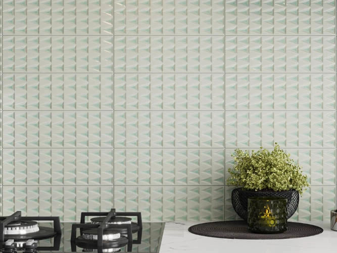 Add decorative flair with our Cayo geometric patterned tiles! The crackle finish on our stylish triangular detailed subway tile adds the perfect coastal chic look to the four color options