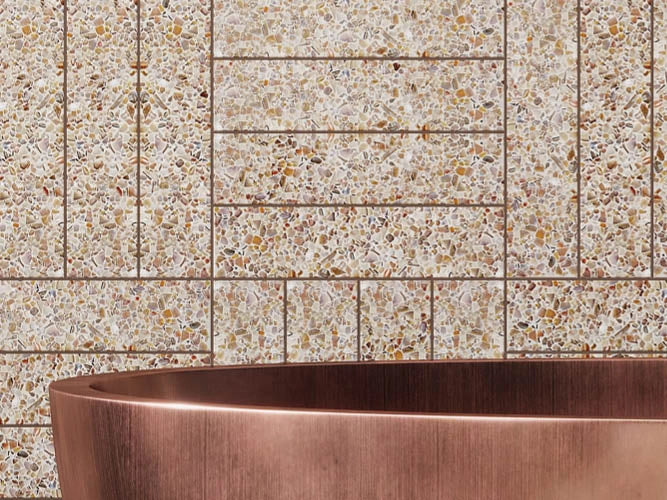 Our Corazza shell terrazzo tiles take this stylish design trends to the next level with embedded specks of seashells!