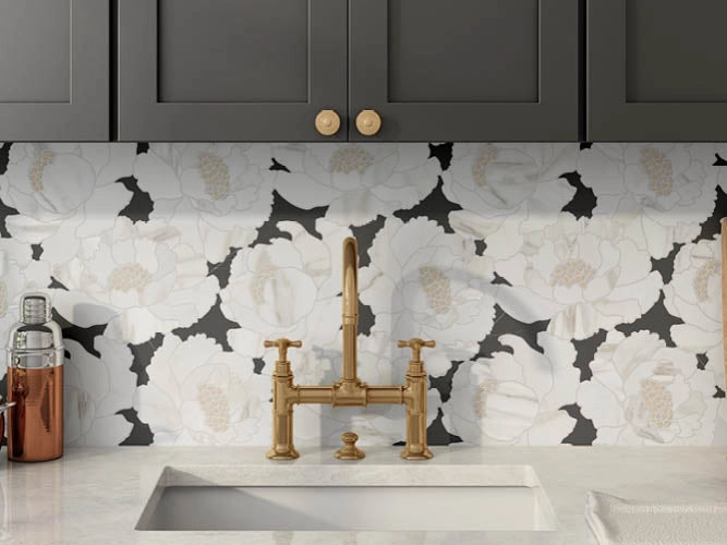Flower patterns aren’t just for wallpaper and duvet covers anymore! You can add a gorgeous and unique home decor accent by designing with flower tiles. Whether you choose an abstract mosaic design combining luxurious white marble and iridescent Mother of Pearl to create a glamorous bathroom vanity wall, add a dairy print marble mosaic to give your farmhouse kitchen backsplash a playful design element, or a geometric hex flower tile accent wall that combines modern design with a stunning pattern - you can’t go wrong when designing with floral tile.