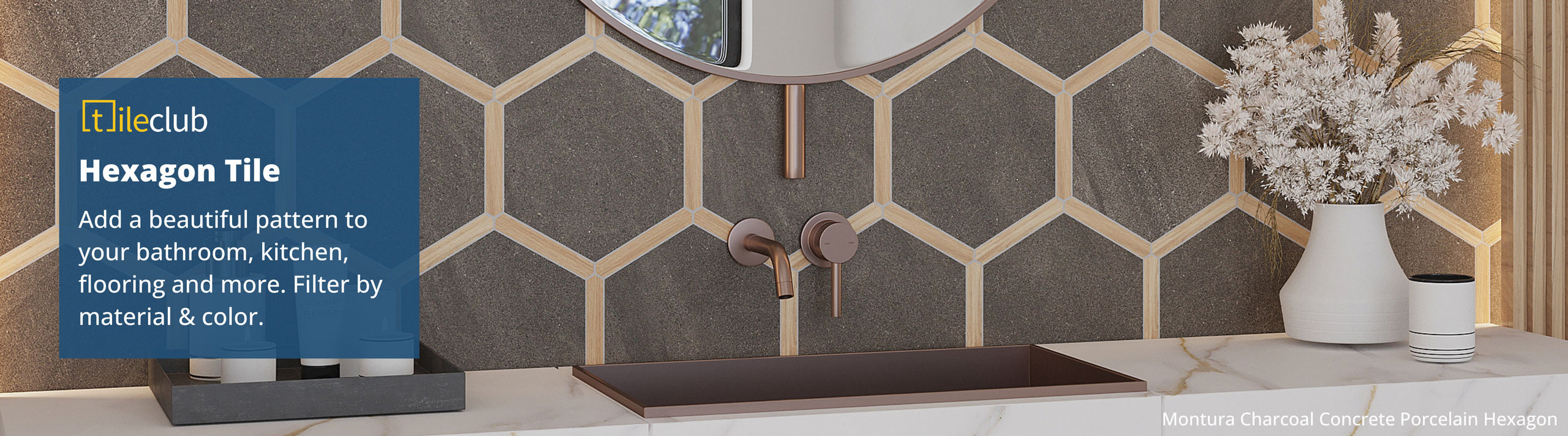Explore hexagon tile for floors, walls, backsplashes, bathrooms, and more with Tile Club’s collection of timeless geometric surfaces. Hexagon tile is a strong choice for spaces that want shape and personality without leaning too ornate, offering a look that feels both classic and current. With options in marble, glass, ceramic, porcelain, shell, and recycled glass, this collection makes it easy to bring a more design-forward pattern into a wide range of interiors.
