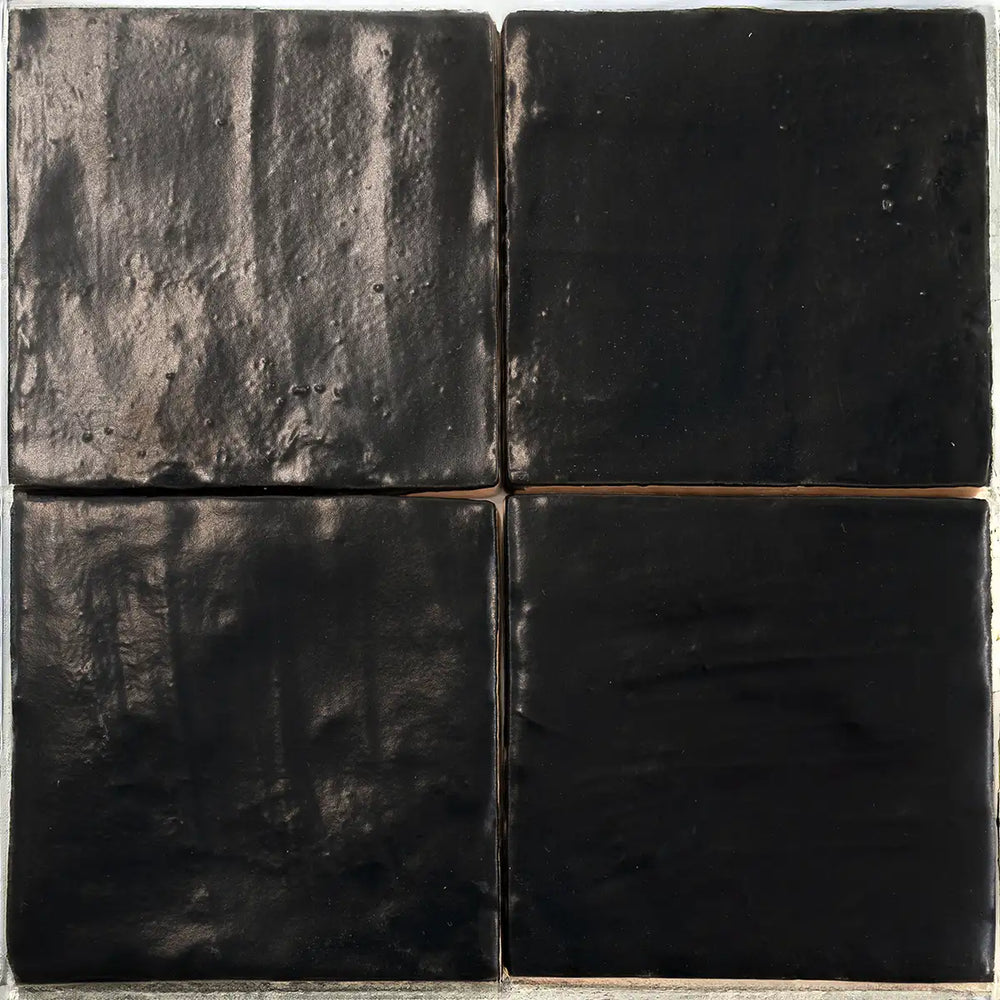 Add a handcrafted touch to your home with our 4"x4" Mallorca black square ceramic tile! These beautiful black tiles have a zellige finish that mimics the look of traditional handmade Moroccan designs. Our ceramic Mallorca tile collection creates an incredible accent wall with black square tiles, a stylish ceramic shower wall, or a modern kitchen backsplash with polished black details! These square ceramic black tiles are sold by the box to cover just over ten square feet, making it easy to create a dramatic black kitchen wall, or tile your shower with the smooth and silky finish of these glazed ceramic tiles. Add a dramatic touch to traditional Mediterranean interior style, create an eye-catching black tiled fireplace facing that will complement the latest trend toward monochromatic and neutral interior design.,