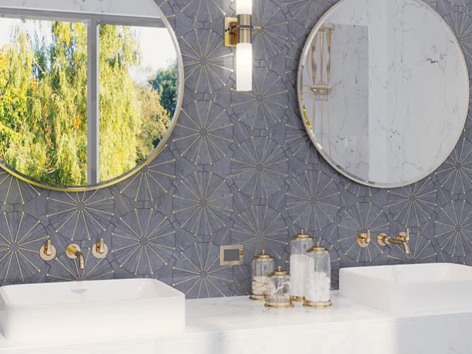 From luxurious bathrooms and kitchens to statement accent walls and commercial feature areas, the Marble and Brass Inlay Art Deco Tile Collection transforms interiors into spaces of elegance and artistry, blending high-quality materials, Art Deco style, and practical functionality into a truly striking finish.
