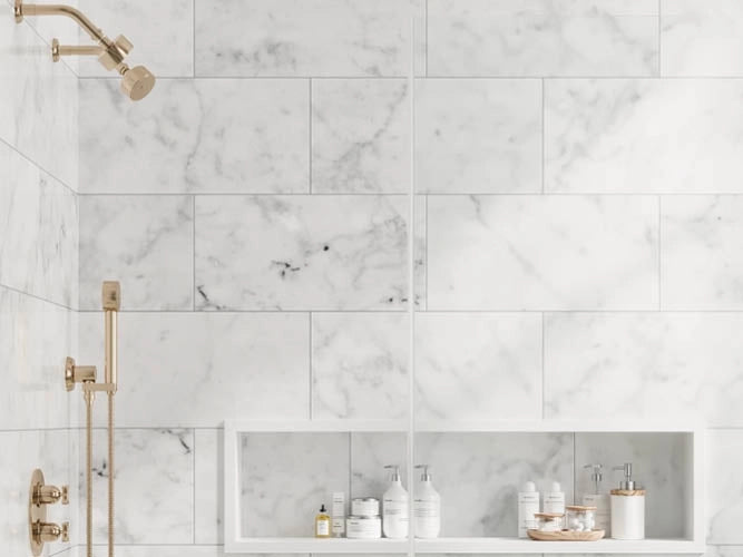 Shop Carrara marble tile for bathrooms, backsplashes, floors, and walls. Carrara marble is one of the most timeless natural stones in interior design, known for its soft white background, gentle gray veining, and versatile look that works across both classic and modern spaces.