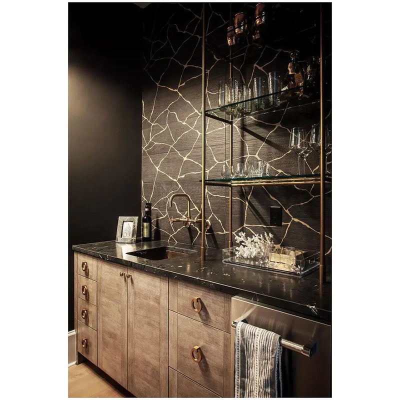 We are in love with the modern and luxurious look of our Kasai Notte Kintsugi 10x60" Black Rectified Porcelain Tile! A combination of black burned wood texture and abstract and gold lines achieves a wow-effect that will amaze all your guests. Based on traditional Japanese art, cracked porcelain texture delivers a unique exotic touch to any residential or commercial setting. It is easy to clean, resistant to moisture, mildew, heat, and cold. Features above make these wood looking porcelain planks a great addition to outdoor and indoor projects. Build an outstanding tiled deck, decorate your patio, bathroom, foyer, kitchen, even a steam room! It is a wonderful black porcelain tile for contemporary fireplace designs, feature walls, black and gold porcelain backsplash, and other accents. It is a durable product safe for low and high foot traffic floors. Whether you decide to decorate the entire area or add an enticing accent piece, this cracked porcelain tile will be a wonderful choice!