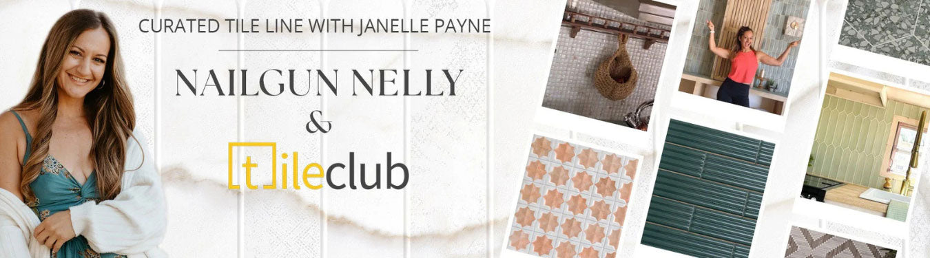 Tile Club is excited to announce our partnership with Janelle Payne of Nailgun Nelly! She is an avid DIYer and also a critical care nurse, mother of two, and wife to her wonderful husband Chad. She uses social media to show the everyday person not to be afraid of using power tools to create spaces they will love! Prior to creating a curated collection for Tile Club, we partnered on several renovations including a home gym accent wall and several incredible vintage RV makeovers (her specialty)! She showcases projects on @nailgun_nelly ranging from large-scale renovations to quick DIY tutorials. Dive into her beautifully selected range of tiles to give your space the perfect new look!