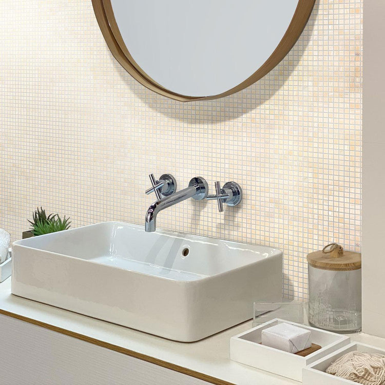 Renovate your space with Alabaster Cream White Squares Glass Tile, perfect for both commercial and residential areas. Picture these stunning tiles on your guest bathroom floor, the master shower wall, your swimming pool, or a neutral kitchen backsplash. Their elegant cream white hue adds a touch of sophistication to any setting. Designed for durability and beauty, these tiles enhance the aesthetic appeal of your interiors and exteriors, making them a perfect choice for various applications.