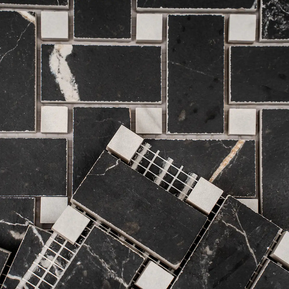 Boldara Nero Basket Weave Porcelain Mosaic Tile Sample