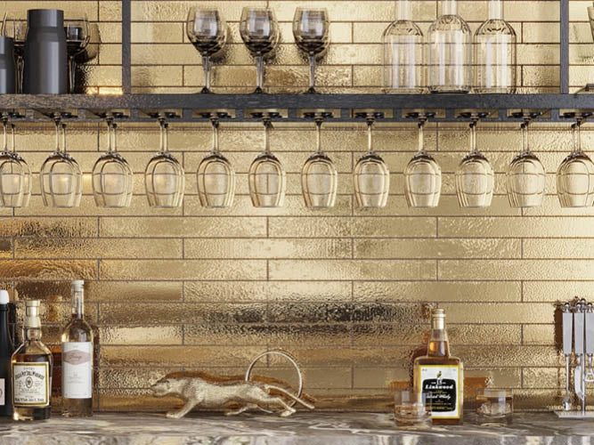 To create their metallic finish, these dazzling tiles go through an extensive manufacturing process that brings out their luxurious style.