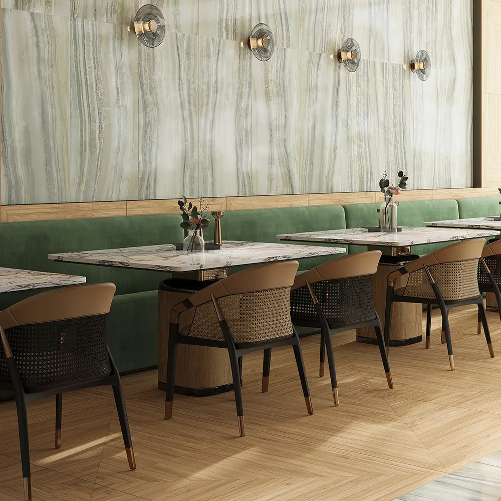 Emporio Jade Crystal-Look Porcelain Tile Veined 24x48 is a gorgeous new addition to Tile Club's best selling Emporio Stone-Look Large Format tiles. This tile uses innovative digital scanning and surfacing techniques to create a 3D honed finish that offers the elegance of nature's most precious stones with the durability of porcelain. Inspired by the delicacy of precious Onyx stones, our Emporio Crystal collection is an exquisite combination of natural and technological artistry. These large-format porcelain tiles are sold in boxes of 2 pieces each, with a total of sixteen porcelain faces available. Adorn floors or walls with these spectacular designs, which can be used to add luxurious style to homes and businesses.