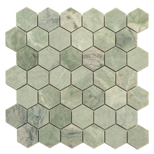 Elegance meets tranquility with Envy Green Marble Hexagon Mosaic Tiles. Whether you envision a simplistic design or a dramatic focal point, achieve a unique aesthetic with mint green marble. The versatile hexagons compliment a wide choice of installations such as high traffic floors, kitchen backsplashes, showers, and more.