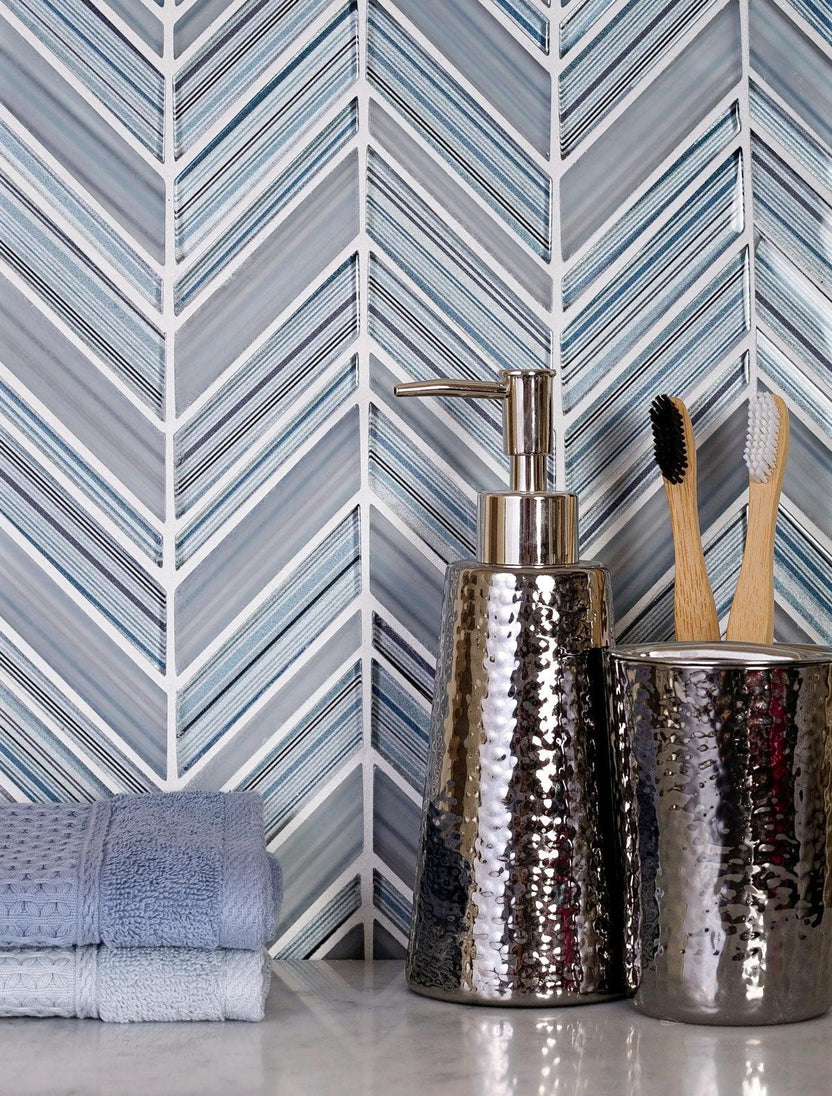 Frequently Asked Questions about Fabrique Blue Grey Chevron Glass Mosaic Tile: