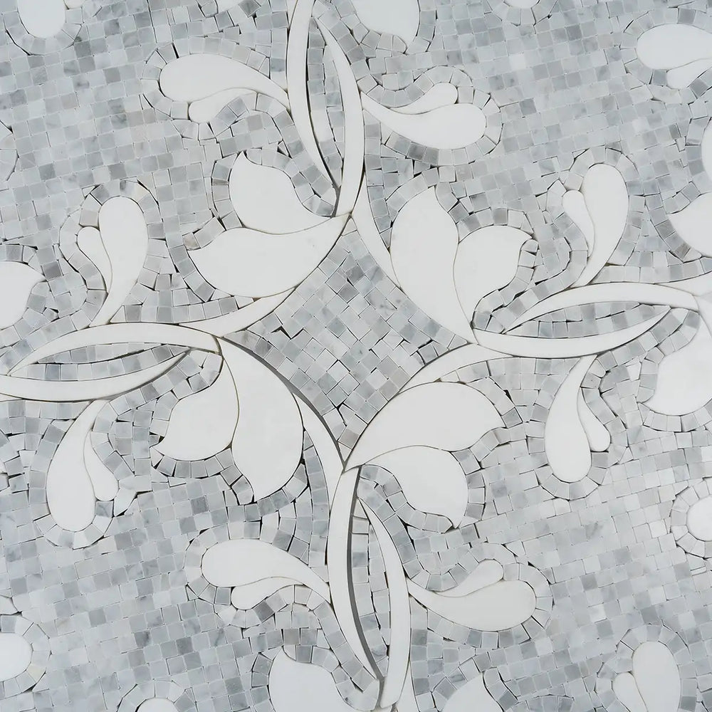 Perfect for exterior design, Floral Dream Bianco Carrara & Thassos Mosaic Tile may be all you need to set the tone for your outdoor renovation project. Add a layer of floral allure to your balcony, courtyard, or patio with this stunning tile. Use it to bring visual interest to outdoor kitchen backsplashes and floors, fire pit surrounds, and walkways.