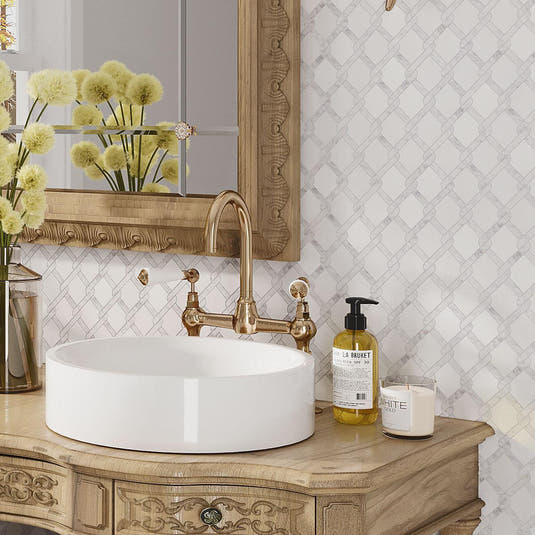 *Natural stone tiles may display variations in color, finish, strength, and slip resistance. White marble may contain naturally occurring iron deposits that can lead to discoloration if used in areas prone to wet or damp, or if exposed to harsh chemical cleaners. As this is an inherent feature of the material, Tile Club does not assume responsibility for discoloration of marble or other natural stone tiles. To ensure you enjoy your white marble tiles for years to come, we recommend installing them in areas that are not prone to standing water, and regularly sealing your tile and grout.