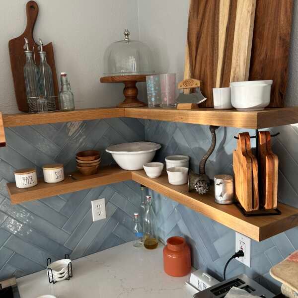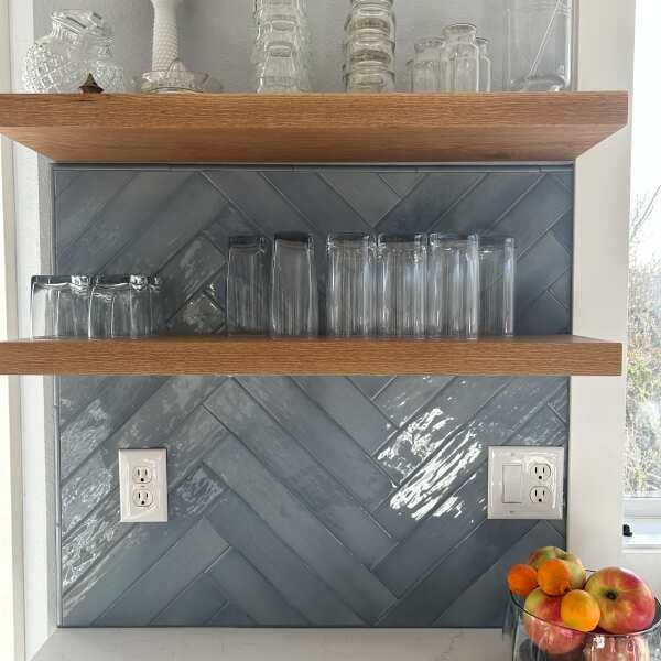 Lake Moon Ceramic Subway Tile in a Herringbone Backsplash Layout