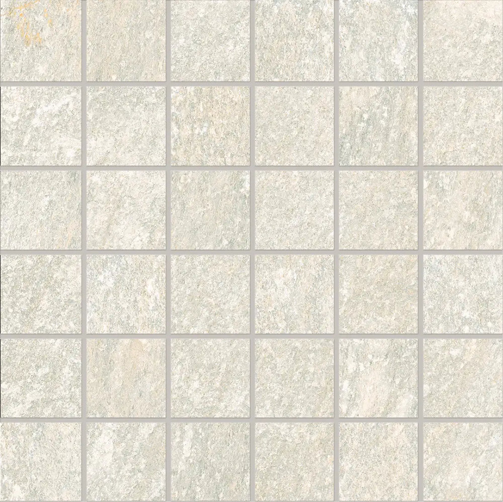 Lithia White Quartzite Look Porcelain Mosaic Tile is a modern stone effect tile that can be utilized throughout residential and commercial spaces. These durable and low-maintenance 2x2inch square mosaic tiles are mesh-backed for easy installation. The warm off-white color is a beautiful complement to any interior style or outdoor decorating, and can be used on high traffic floors, stone-look accent walls, showers, and backsplashes.