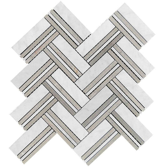 Nova Herringbone Beige Marble Tile Sample