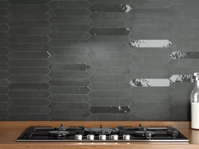 *The install image shows a mix of Picchetto Pearl Matte and Gloss finishes. To recreate this look in your own home, boxes of both finishes can be ordered and mixed together during the installation process. Tile Club recommends laying out your matte and glossy picket tiles prior to applying your adhesive to make sure you are happy with your custom mix before adhering the tiles! See more finishes in the Picchetto Ceramic Picket collection!