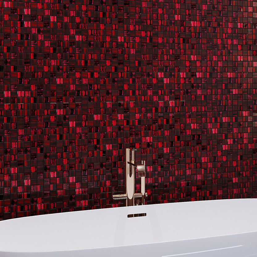 Highlight your home with our bright red tile in a traditional square shape. The combination of frosty and glossy red glass pieces brings drive and passion to your space and adds a unique touch of artistry.