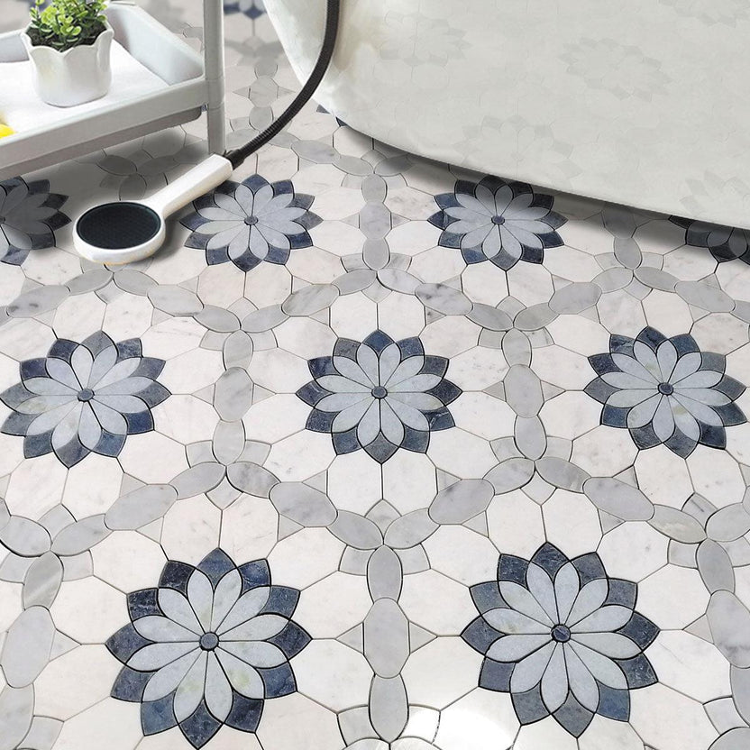 Luxurious natural stone is perfect to add a high-end appeal to your commercial or residential spaces. Our flower marble mosaic tile is the perfect backdrop for showers where you’ll end up with a truly unique space!