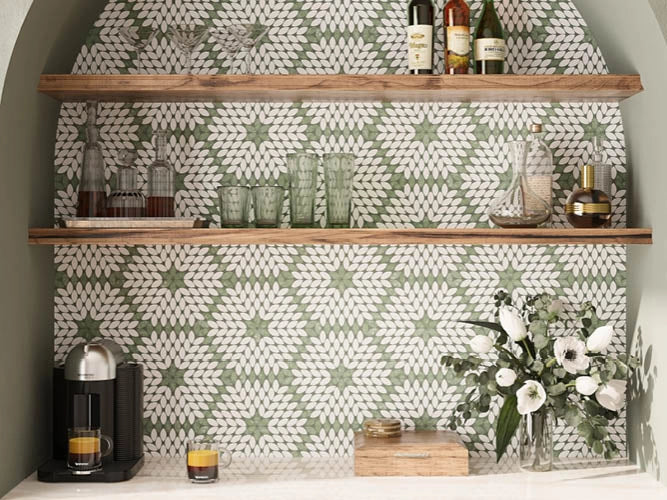 We love that this floral tile can add a soft, romantic touch to a room that makes it more welcoming. With the beauty and positive energy of flowers in interior design, this mosaic tile is a simple way to improve your mood on a day-to-day basis! When used for flooring, its elaborate detail adds complexity along with anti-slip qualities which make it ideal for bathroom and shower floors.
