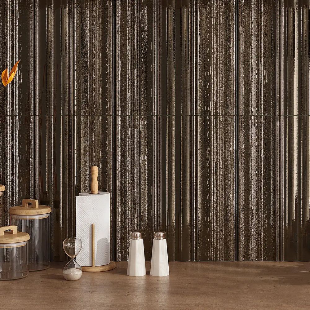 Struktura Gold Dimensional Porcelain Tile is a new release from Tile Club offering a structural wall covering that adds a textured accent to any space! These glam metallic porcelain tiles are a fresh cladding option to a contemporary design.