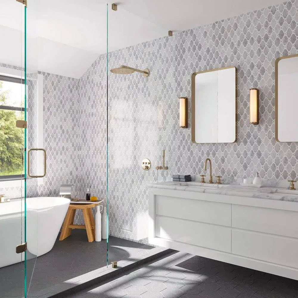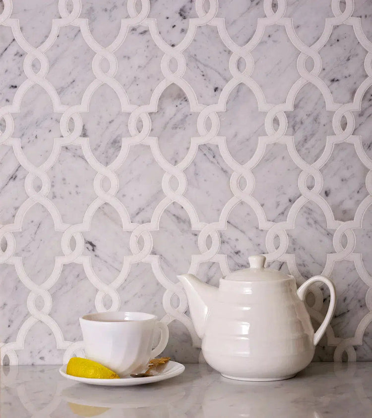 High-quality materials, distinctive lines, and a relaxing color palette bring a luxurious touch to your home. A modern take on a vintage arabesque tile draws you in with its simplicity and combination of geometrical forms. A classic marble look with natural Carrara is intertwined with immaculate white Thassos pieces to achieve a fresh feel. All tile sheets form a continuous chain pattern and are interlocked together for fast and easy installations. These mosaics are a true piece of art that can grace any design project! These marble mosaic tiles are sleek, modern designs that are able to bring life into any room or structure. This beautiful, intricate tile is perfect for creating a statement in any home!