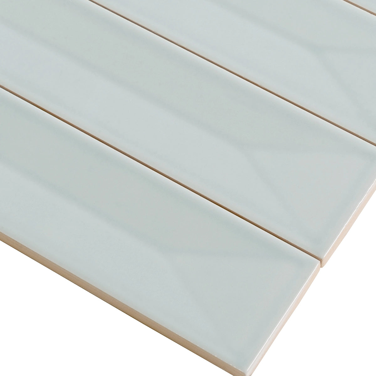 Viva Peak Sky 2x16 Ceramic Subway Tile adds glossy shine to walls throughout your home or business! This 2" x 16" ceramic piece is a gorgeous way to add subtle texture to a statement powder room backsplash, gorgeous accent wall behind your kitchen range, or an easy to clean master bathroom shower! These tiles are sold by the box, allowing you to easily cover your walls with a textured design. They can be paired with other colors or smooth textures in our Viva collection, and also come with a matching ceramic trim piece. Play around with dimension by pairing these 3D subway tiles with our smooth Viva designs to add depth to any installation. You can choose your preferred layout to give a personal spin to this style - from herringbone to a classic running bond pattern to a modern vertical stack.