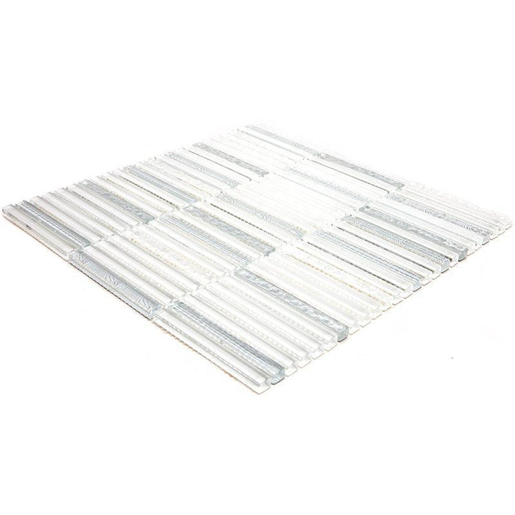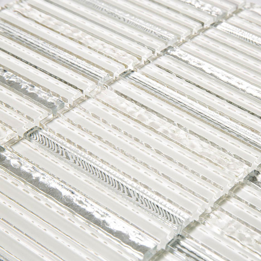 Waterfall Platinum White Glass Mosaic Tile